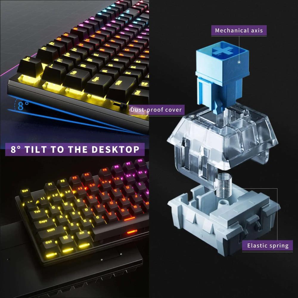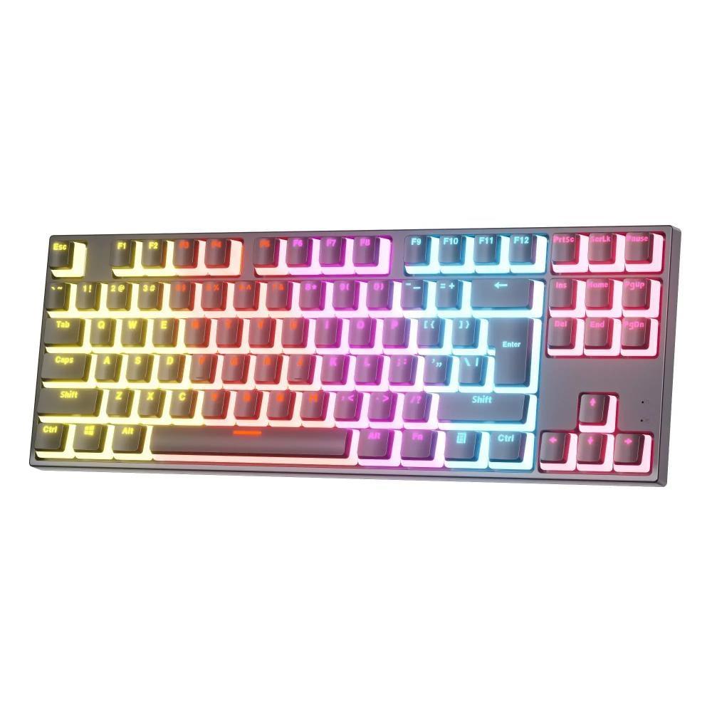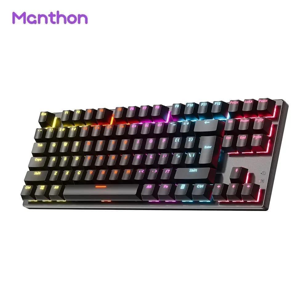 لوحة مفاتيح ألعاب ميكانيكية صغيرة OEM سلكية بـ87 مفتاحًا، إضاءة خلفية RGB LED، تصميم مدمج بسعر اقتصادي، مثالية لألعاب الكمبيوتر المكتبي وتوفر أداءً جيدًا بتكلفة منخفضة.
